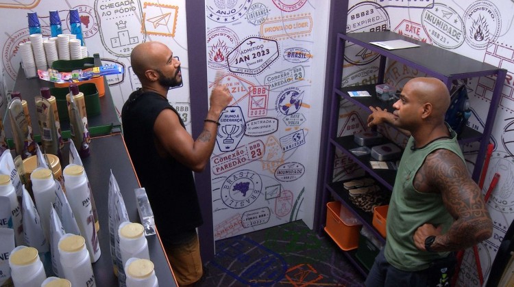 Na despensa do BBB 23, e conversam sobre a . Ricardo diz que a sister deve permanecer na dinâmica por mais tempo: "Depois que eu falei pra ela ficar espaçosa lá, ela vai ficar grandona em cima dele, mas ela põe a mão nesse botão".